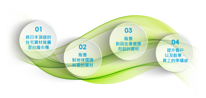 新日綠建材股份有限公司引進「日本頂級綜合內外裝建材」秉持讓客戶享受到居住生活品質上的重要元素:「健康」、「無毒」、「舒適」、「安全」、「節能」、「環保」。