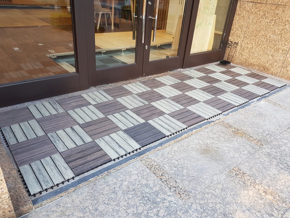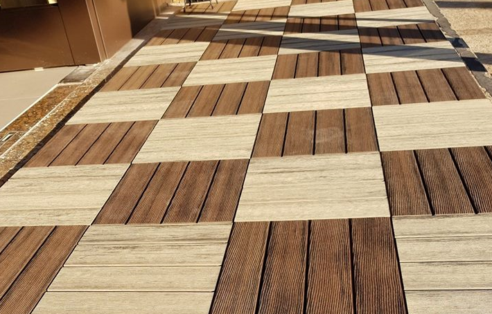 塑木地磚為木材塑膠之複合材料,結合了2者的優點。