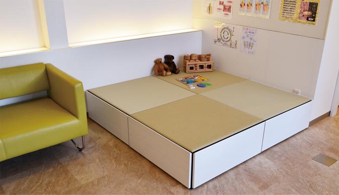有別於傳統榻榻米,可用溼布擦拭表面且防潑水。